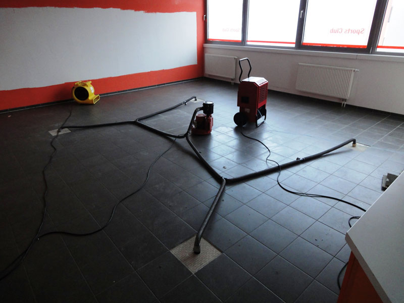 Zunächst wird bei der Trocknung von Gebäuden das Wasser aus Wänden, Fußböden und Decken durch die „Entleerung großer Hohlräume“ entfernt. Danach erfolgt die Zufuhr von thermischer Energie, um die betroffenen Flächen von Grund auf zu trocknen. So entfernen wir dauerhaft die Feuchtigkeit aus Ihrem Bauwerk, mit den neuesten Trocknungstechniken und -maschinen.